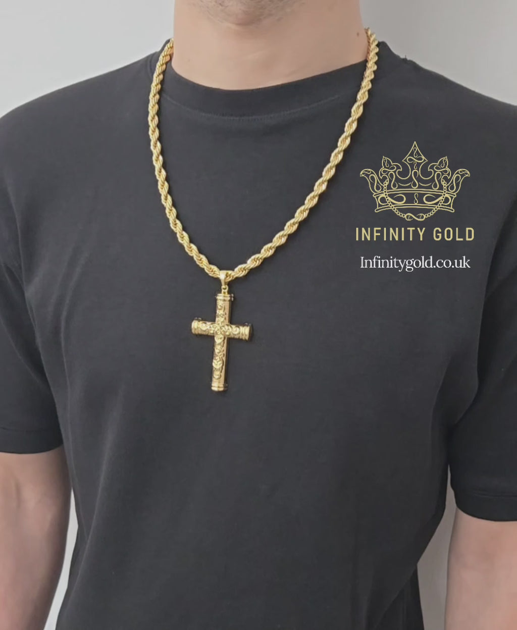 Large Patterned Cross pendant on Rope Chain